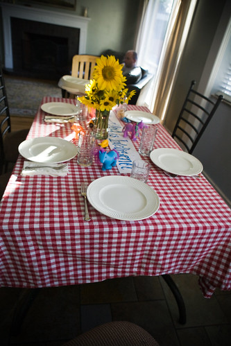 In celebration of Baby Sunshine, who is having her very first “back to school” weekend, we had a very special dinner. The theme of the dinner, and this year’s school year is: “The Glory of God is Intelligence.” We talked about how now that she is going to school she will start to learn lots of new things – how to tie her shoes, and make art projects, etc. etc. We told her that all those things she will learn will help her become more and more like God, because Heavenly Father knows all things. She was sent to this earth to gain experience and knowledge, to become more like Him. Going to school is an important part of that process. I hope she will enjoy the years ahead of formal education. I have the feeling she will like it very much.